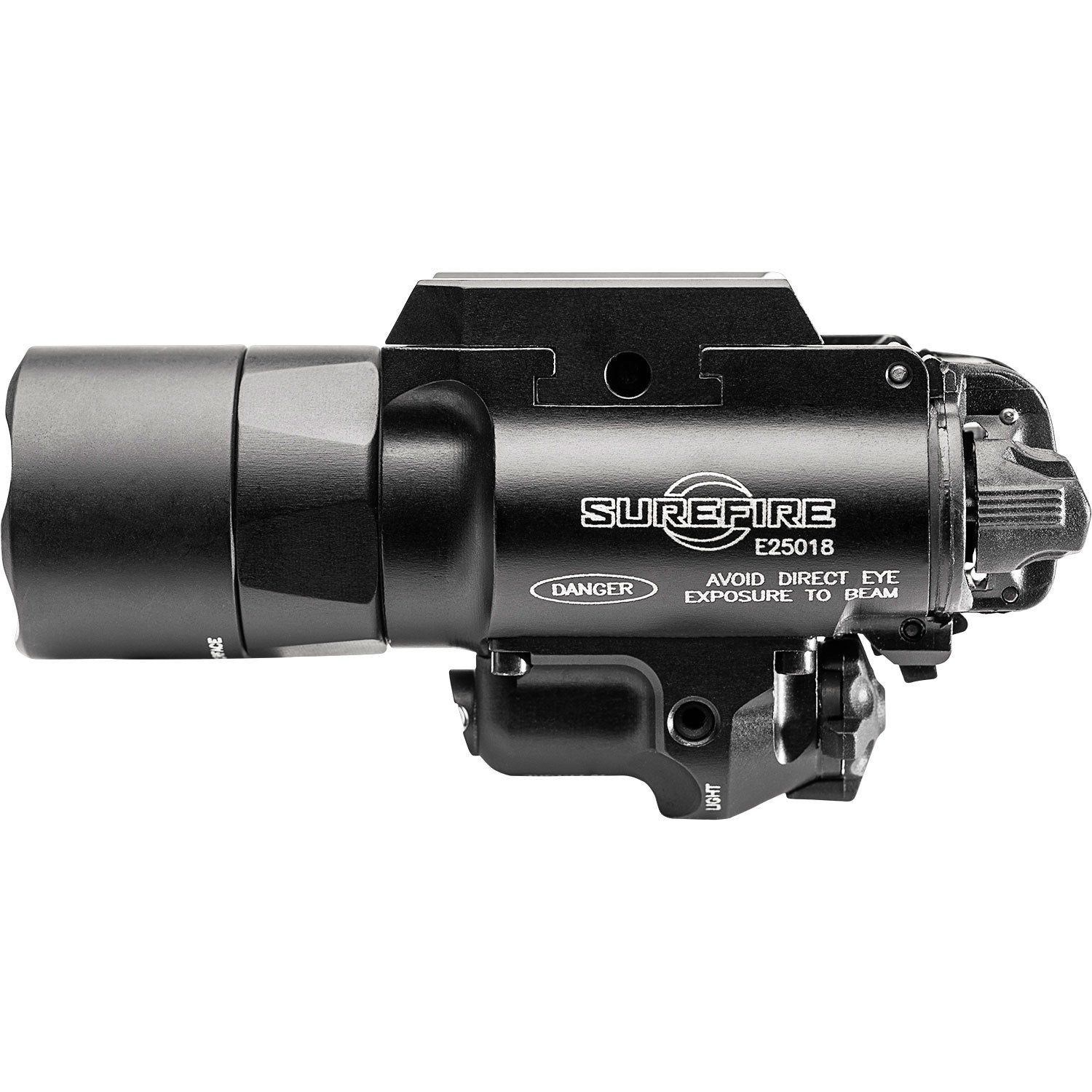 Pinpoint The Threat. The SureFire X400U is engineered to fit virtually any rail-equipped pistol. Its recoil-proof LED and TIR lens focus 1,000 lumens of light into a smooth, far-reaching hybrid beam with a large central spot and plenty of spill light, an extremely effective combination for close- to medium-range engagements. Available in traditional red (635 nanometers) or high-vis green (515 nanometers), its 5-milliwatt laser is highly visible to the human eye to help the user get on target quickly and accurately. With a Mil-Spec hard-anodized aluminum body that’s light, strong and weatherproof, it can handle hard knocks and stay in the fight. Mounting an X400U on your pistol or long gun is a clear sign that you take your security seriously.